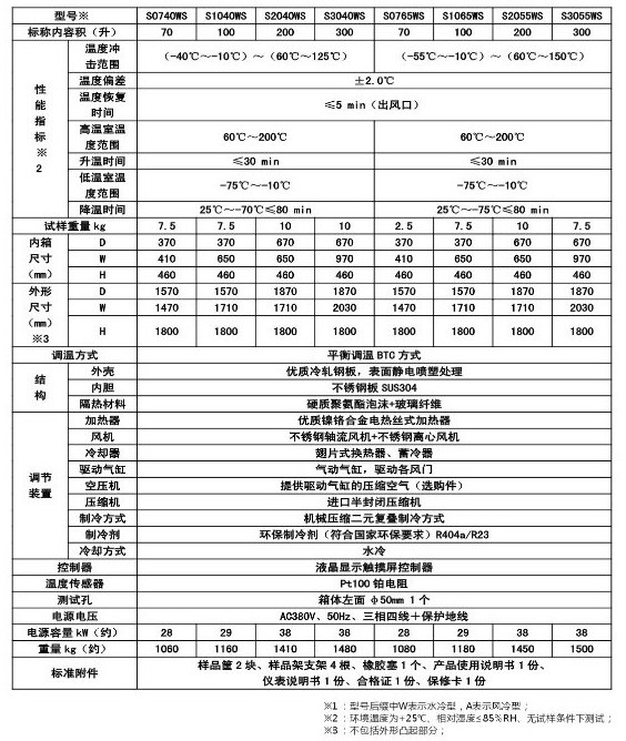 MC028系列溫度沖擊試驗箱  一、產(chǎn)品簡介 用途:適用于對電工、電子和其他軍用設備在周圍大氣溫度急劇變化條件下的適應性試驗。 特點: 1.充分吸收國外同類產(chǎn)品的優(yōu)點,采用兩箱式上下結構,上箱體為高溫箱,下箱體為低溫箱。也可根據(jù)用戶要求設計,制造左、右結構的兩箱式溫度沖擊試驗箱。也可以根據(jù)用戶要求采用單相式(或三箱式)結構設計。 2.觸摸屏+PLC可編程邏輯控制器,RS485接口。 3.有工作室超溫、壓縮機過載、超壓、油壓超壓、風機過載、缺相、壓縮機延時等保護功能,還有若干用戶選配的安全保護功能,如風速過低,大門未關閉等等。 4.可選配遠程監(jiān)控計算機及軟件,上位機實行冗余設計,可連接PC電腦,也可連接觸摸屏控制器。上位機關機不影響系統(tǒng)控制。 二、技術參數(shù):